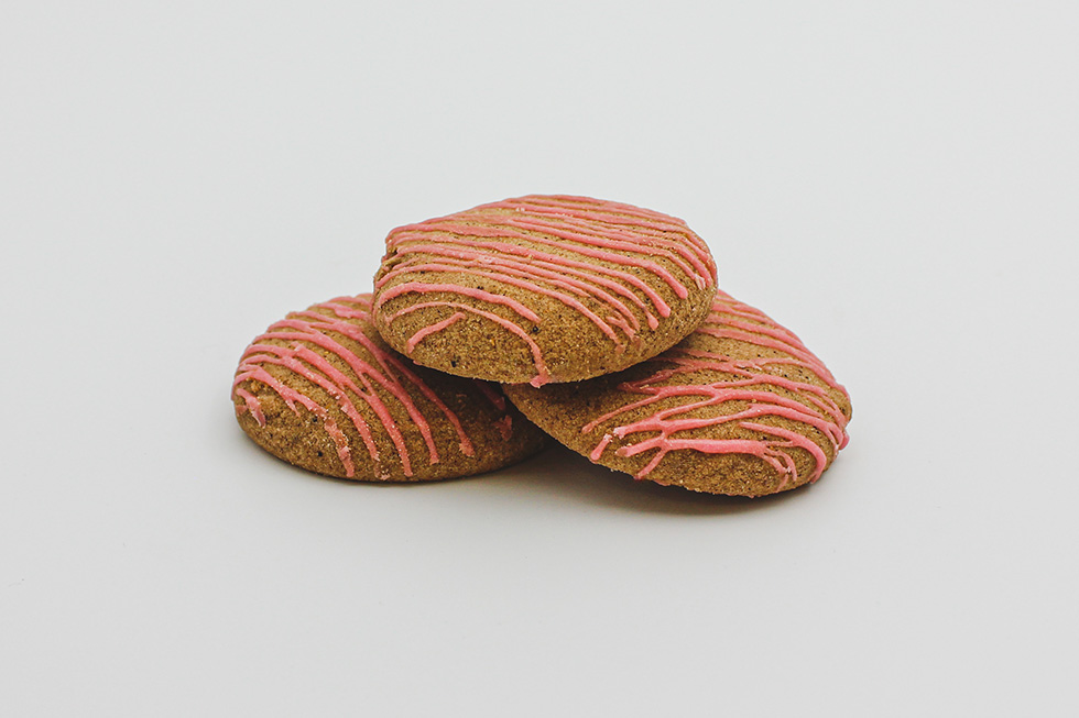 Delight in a delicate berry jam cased in a delectable gluten-free pastry infused with aromatic spices. Finished with a drizzle of pink icing.