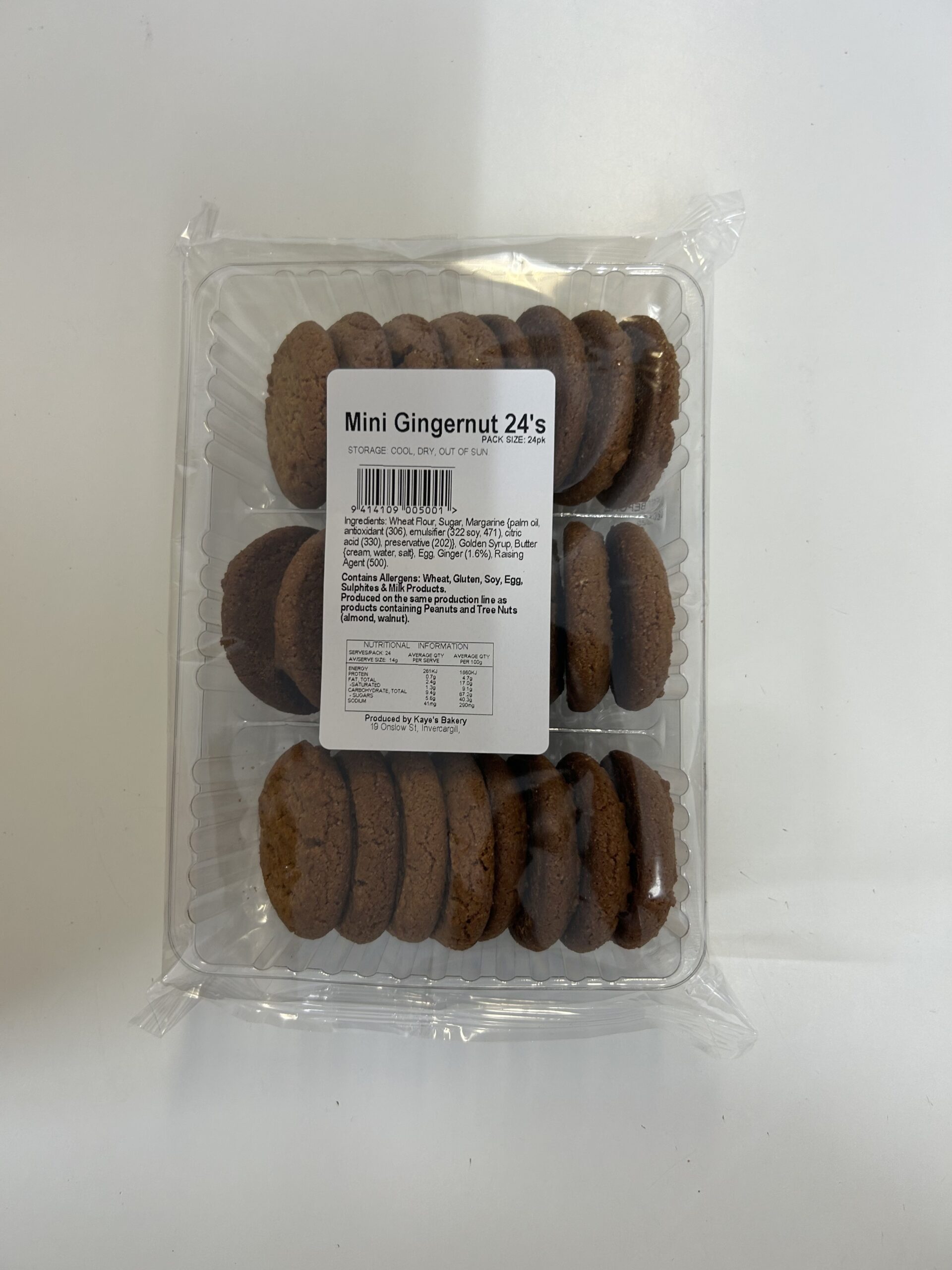 Fortified Wheat Flour [wheat flour, vitamin (folic acid)], Sugar, Margarine [palm oil, antioxidant (307), emulsifier (322 soy, 471), citric acid (330), preservative (202)], Golden Syrup, Butter (milk) [cream, water, salt], Egg, Ginger (1.6%) (sulphites), Raising Agent (500).